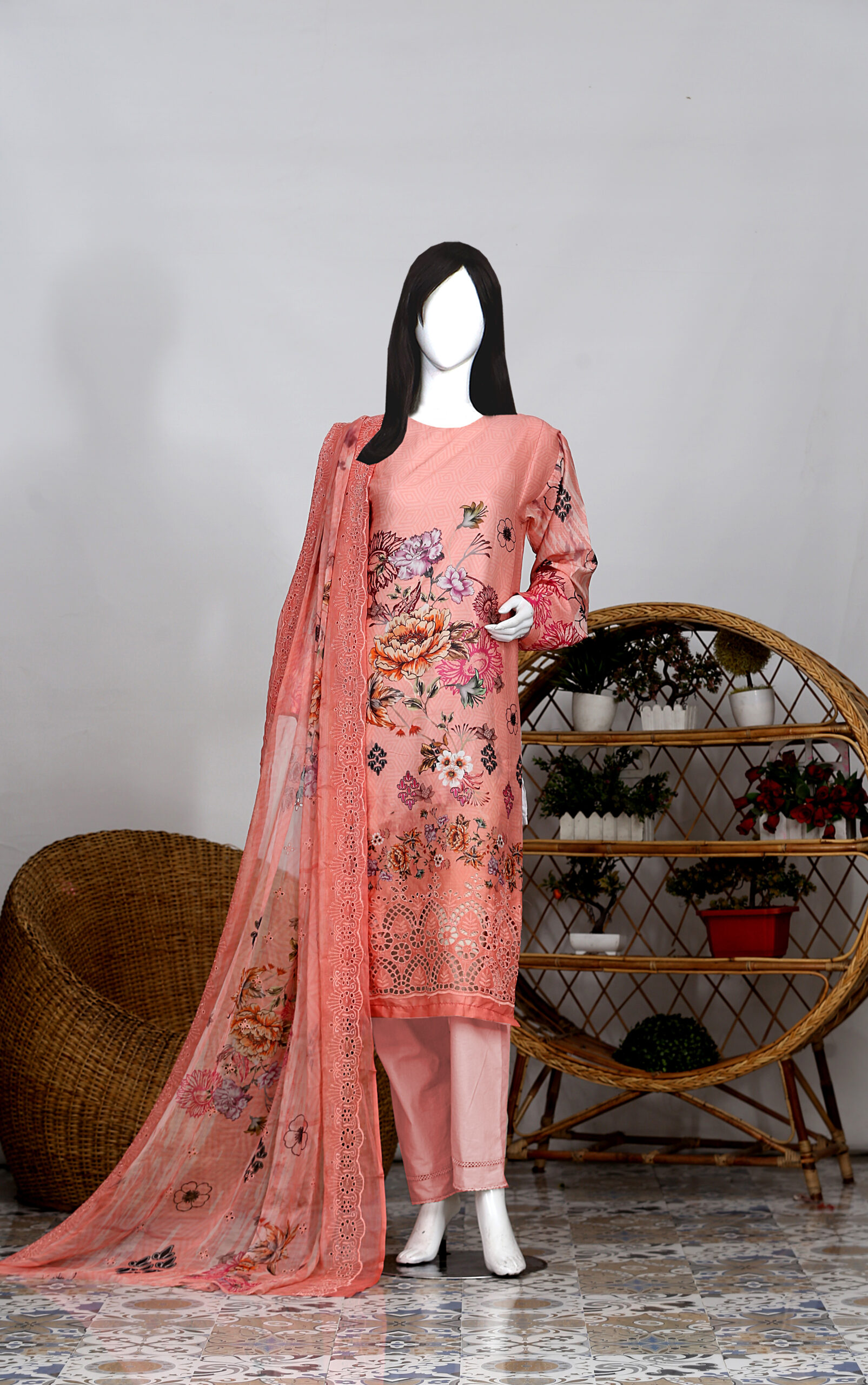 Get ready to feel fabulous with Zainbia! Our new shirt is bursting with beautiful flower designs and has lovely embroidery at the bottom. Plus, the bottom part of the shirt has pretty decorations. Wrap yourself in style with our fancy dupatta made of special embroidered fabric. And don’t forget about our simple trousers to complete your look. At Zainbia, we make dressing up easy and fun!