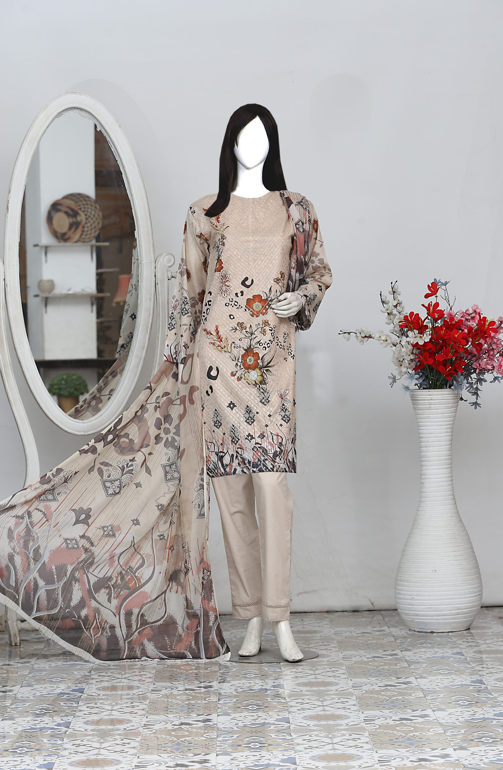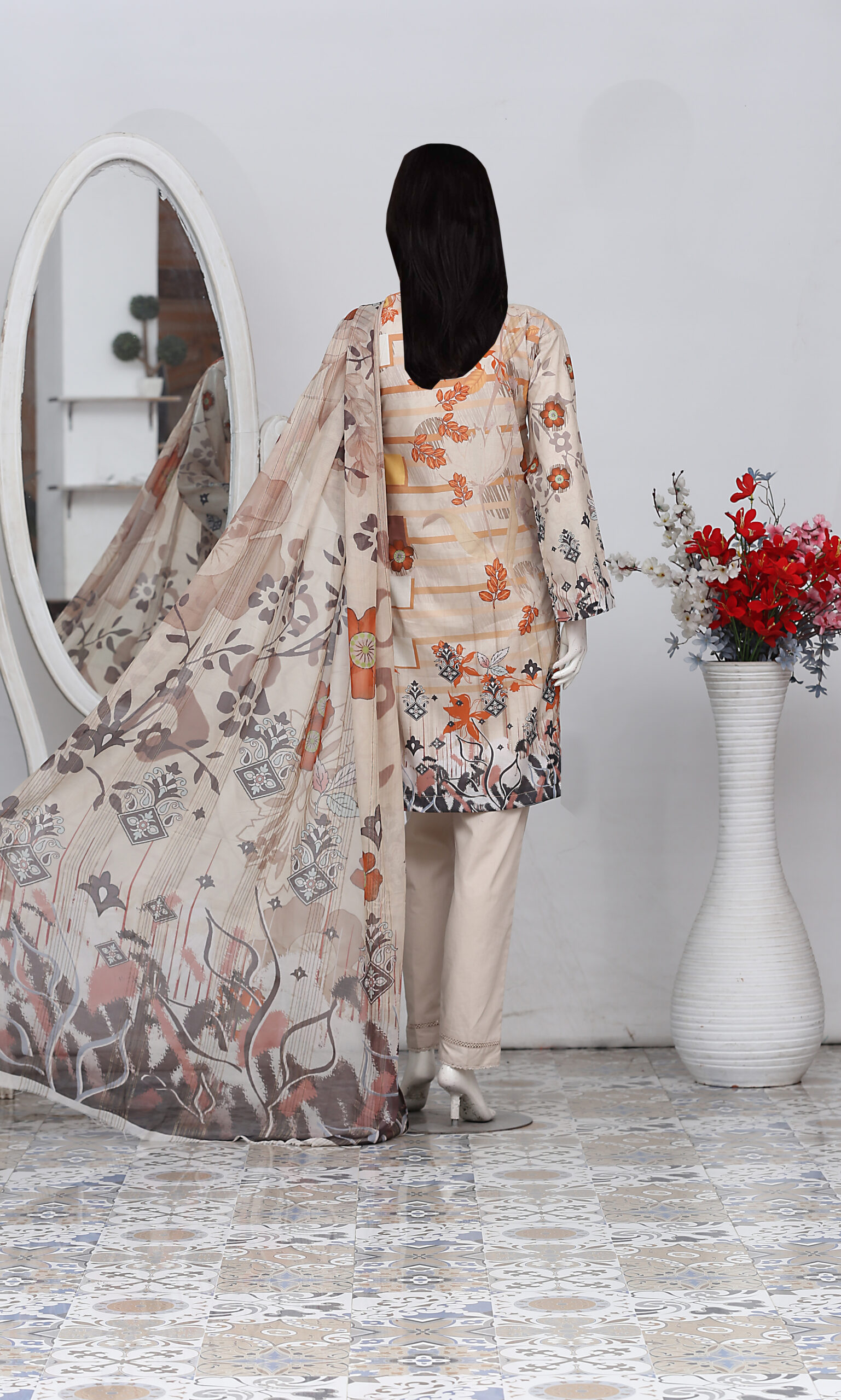 Dress up in our gorgeous Printed Chikan kari outfit with special Tila work – it’s like wearing a piece of art! The golden zari dupatta adds a fancy touch, making you look extra special. The trouser is simple and comfy – easy to move around in. Perfect for any event, this outfit mixes tradition and modern style effortlessly. Feel amazing in the charm of hand-printed Chikan kari and cute Tila details a blend of classic and cool!